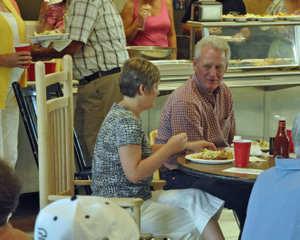 At the dinner, John and his wife, Patsy, were provided rocking chairs (below).  Patsy used hers; John didn’t (below).