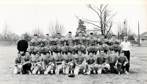 The photo below of the baseball field, also taken from the 1950 yearbook, shows the rather substantial stands which once were located on the third base side of the field.